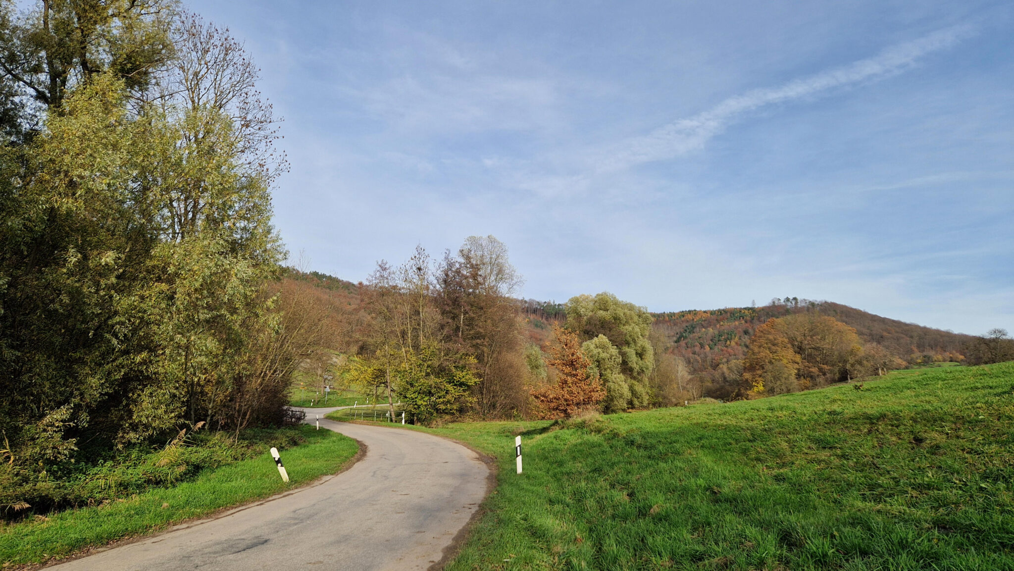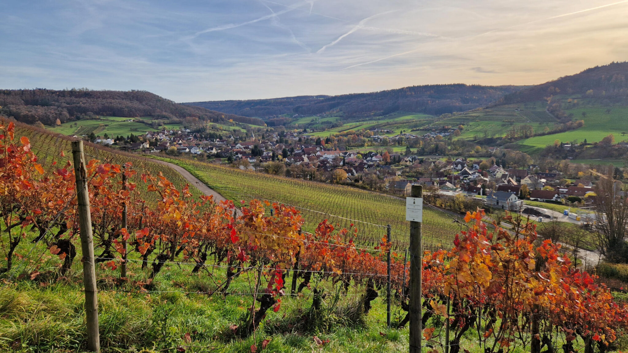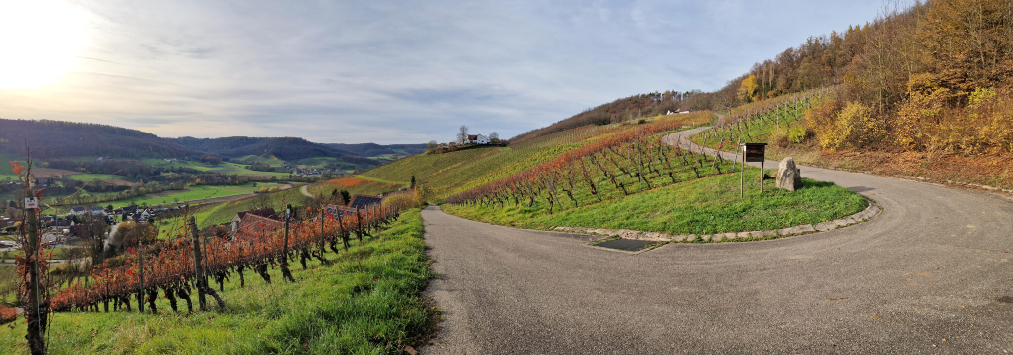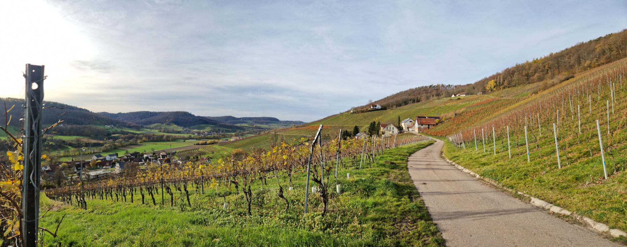 Die wenige Sonne die da war ist dann halbwegs auch noch verschwunden. Aber schöne Route, zwischen den Reben mit Blick auf den Hügeln mit den Bauernhöfen gegenüber.