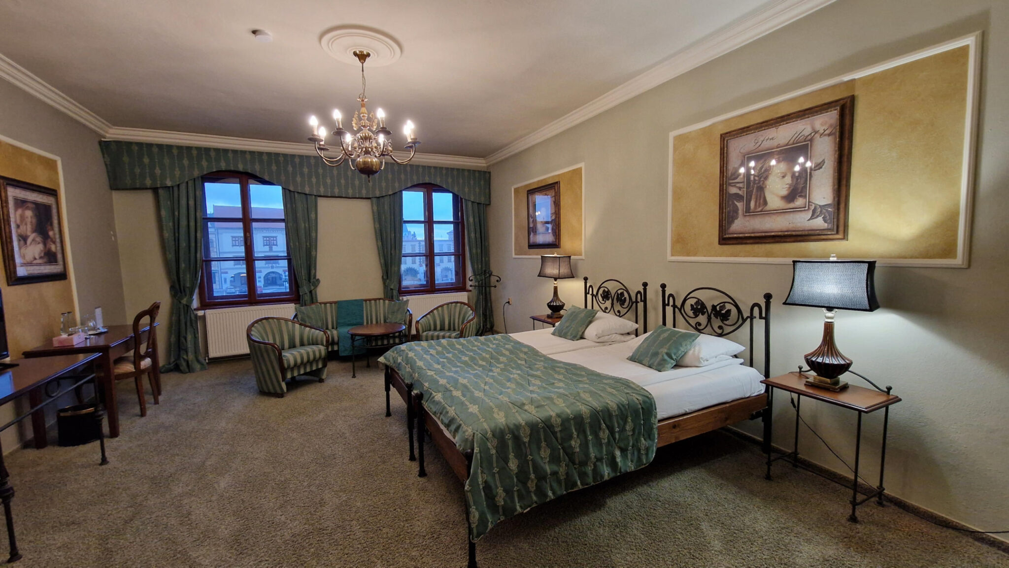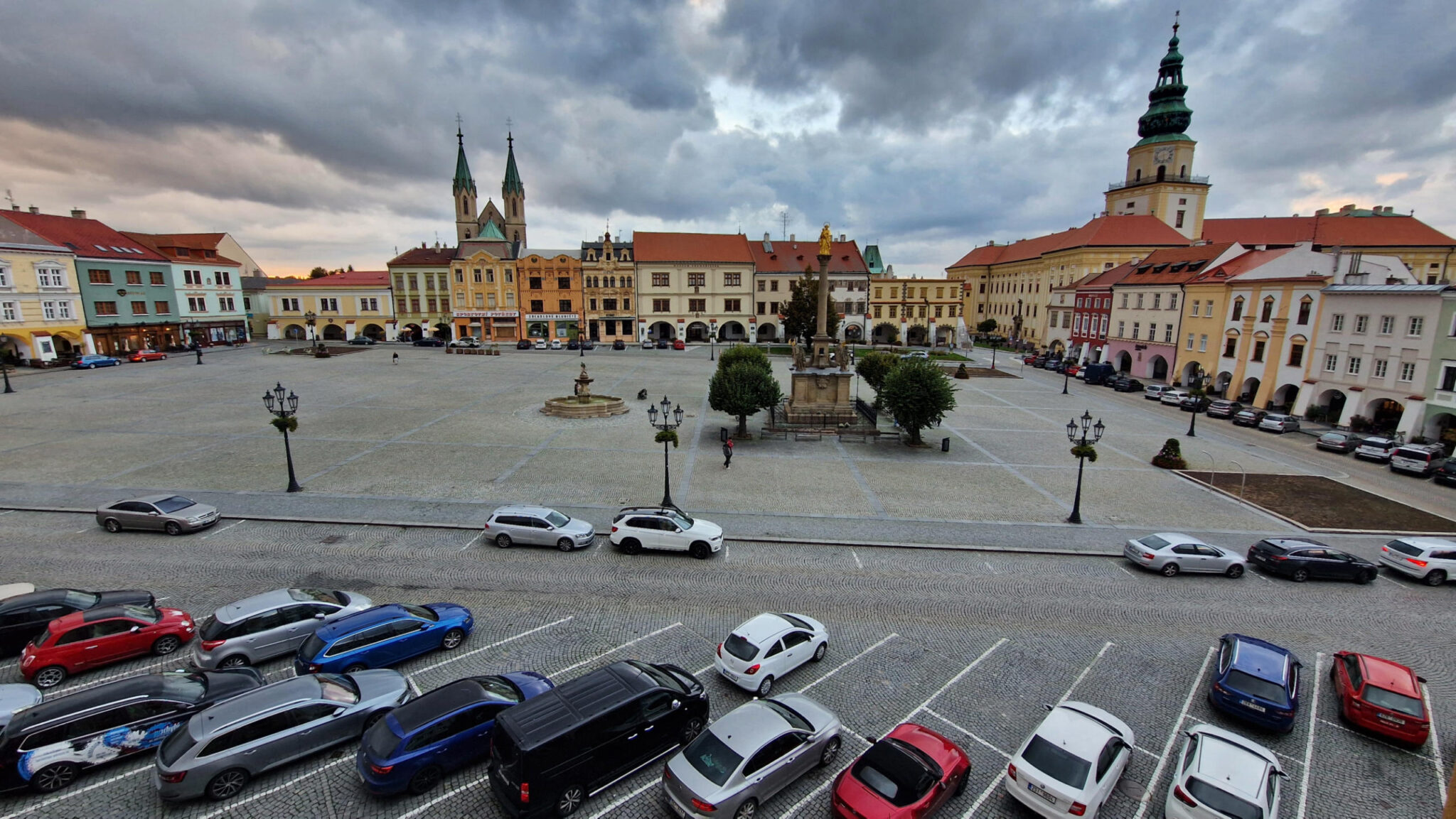 Unser Hotel Boucek war direkt am Marktplatz. Geparkt vor der Tür (2€ pro std, kostenlos 18-07h) und das schöne Zimmer mit Aussicht aufm Marktplatz genossen.