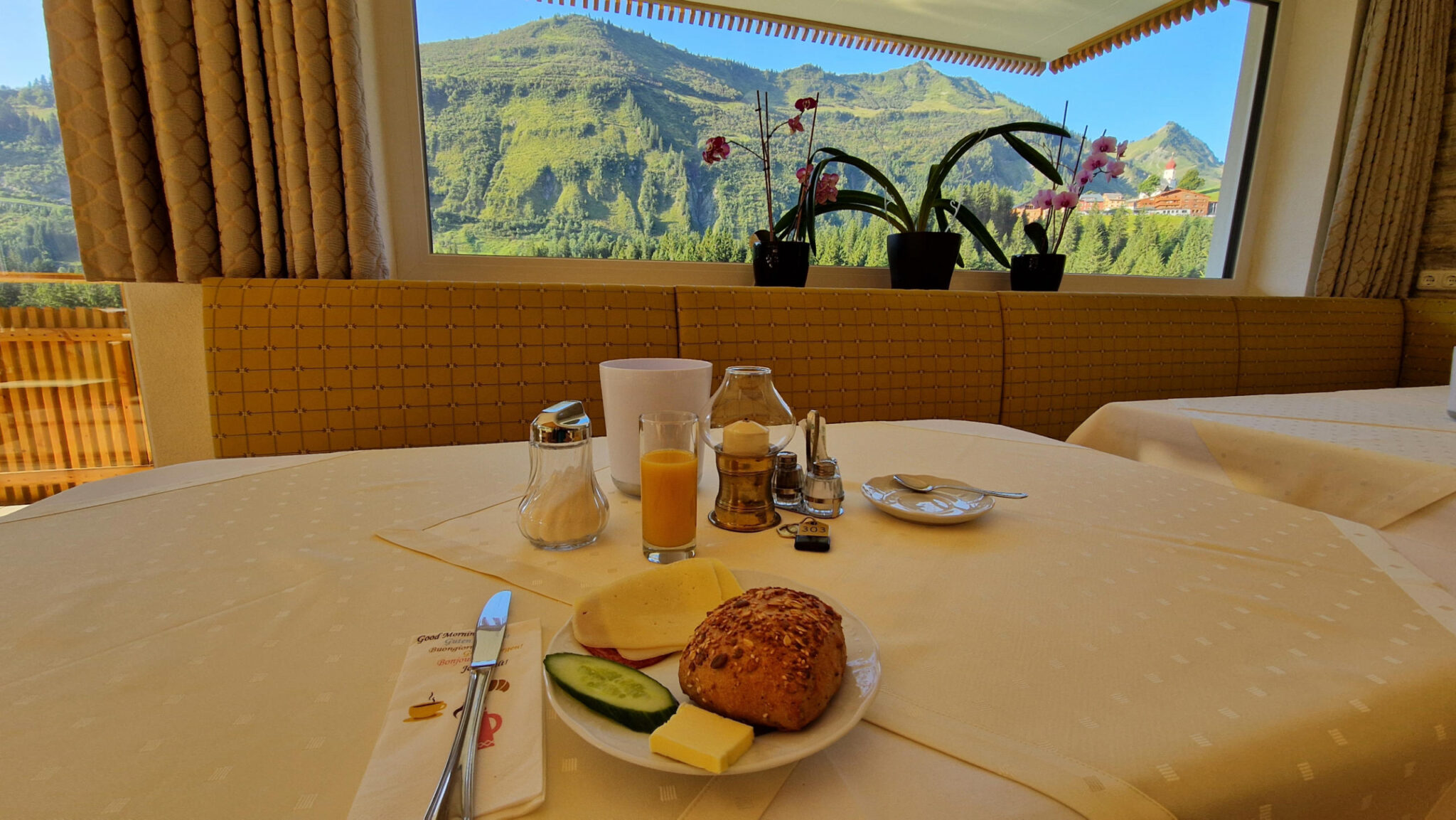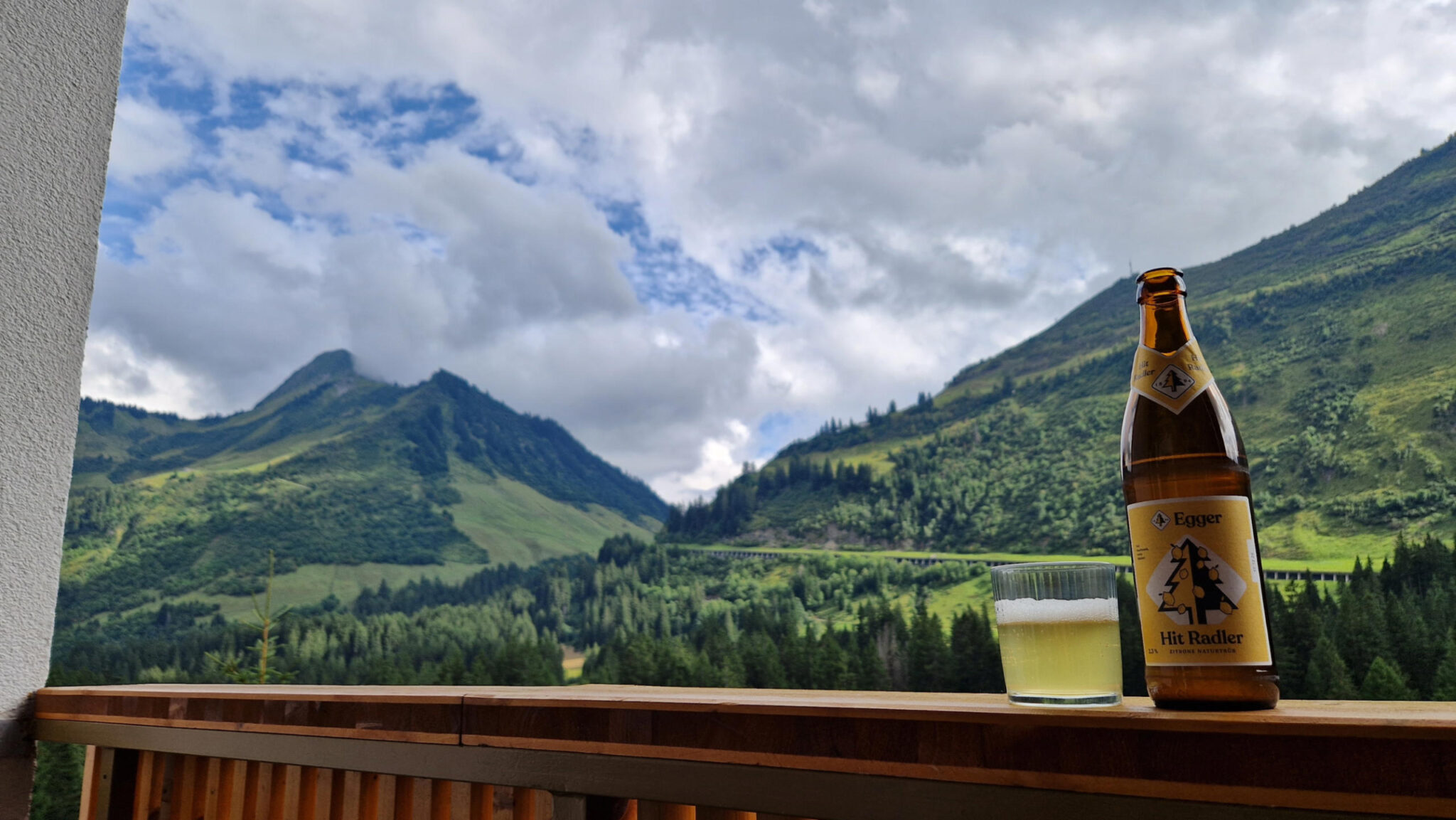 Ein Radler aufm Balkon und dann wieder bestens versorgt im Hotel Sonnalpen.