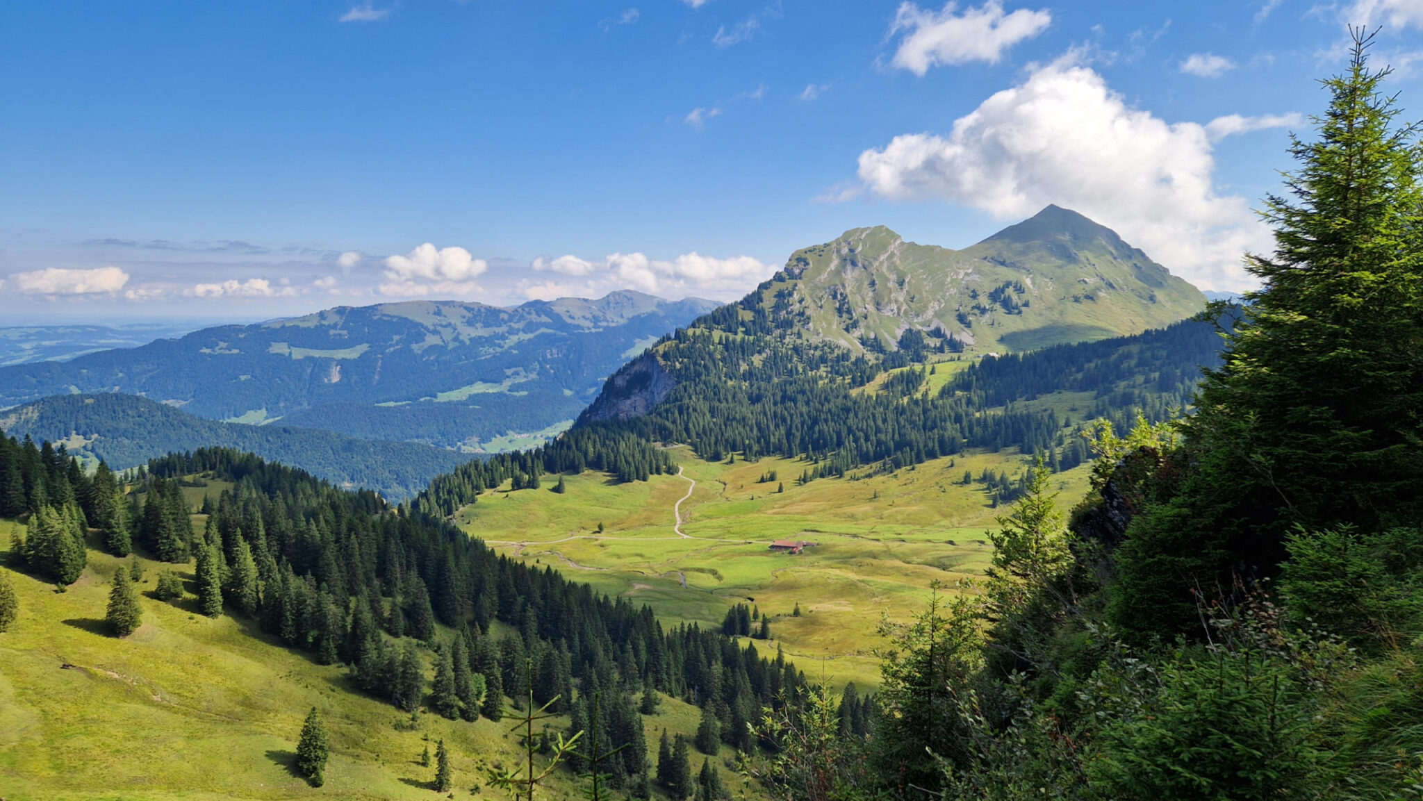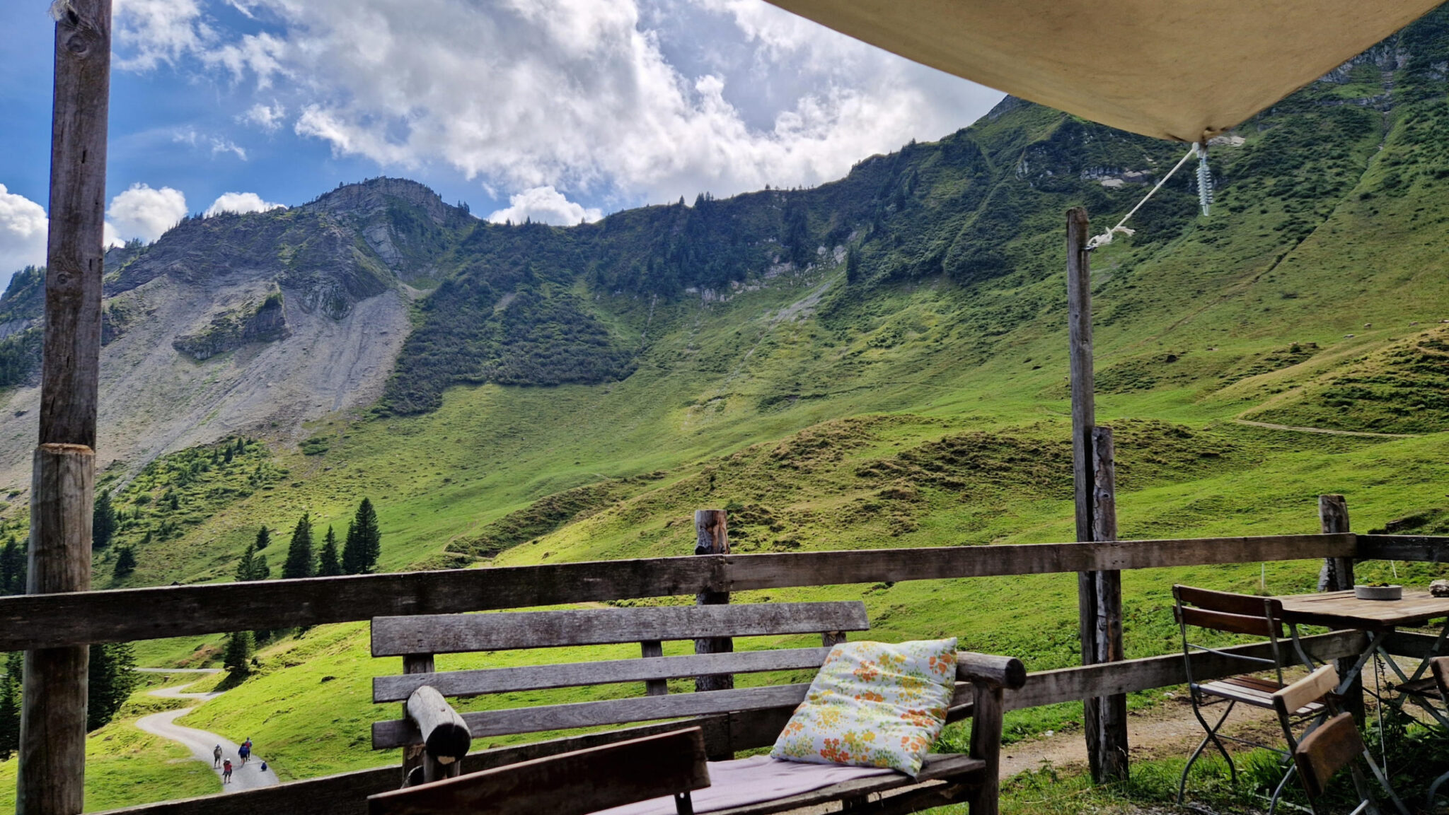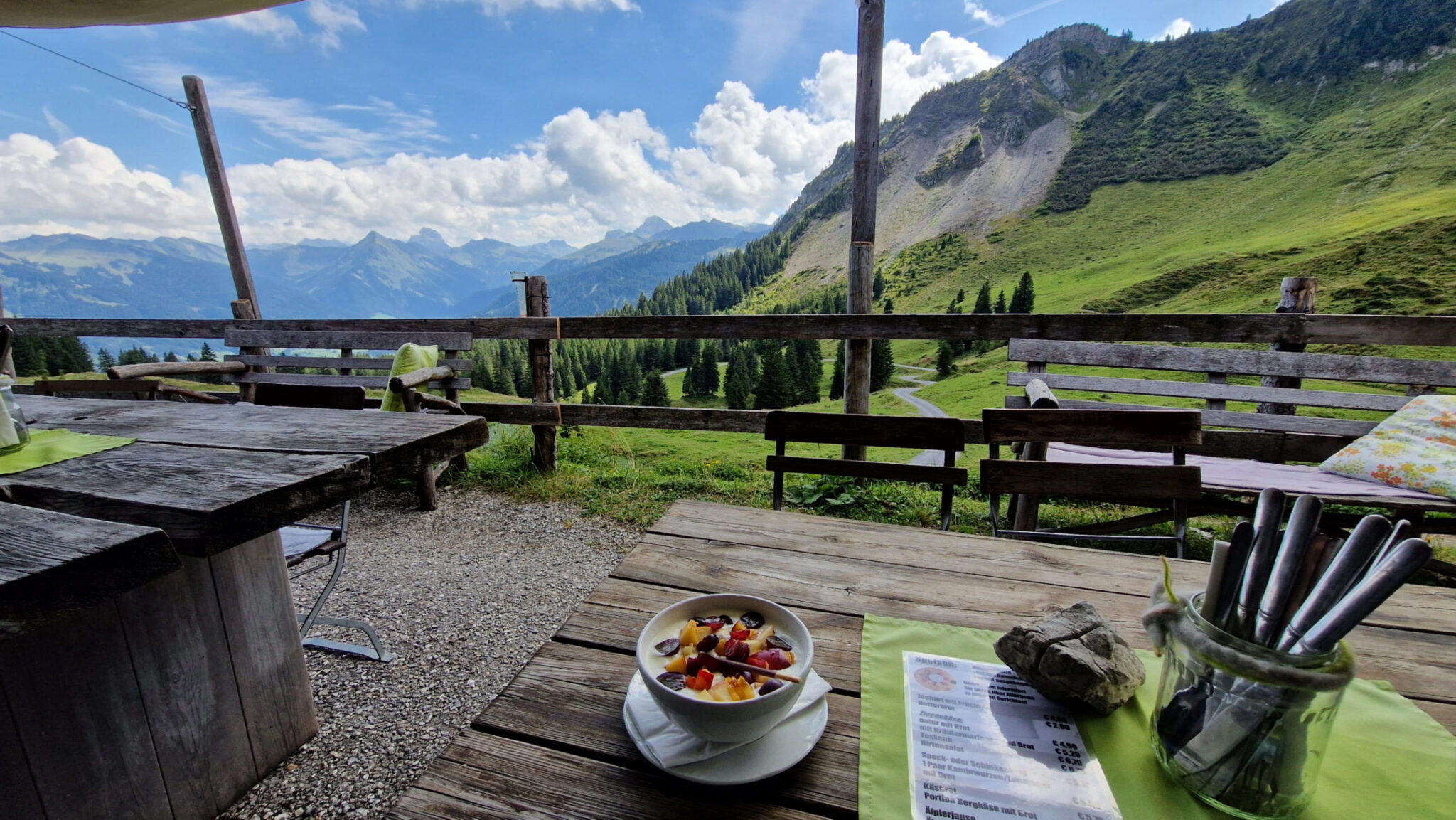 Bei der Obere Alpe ein Joghurt mit Früchte (4,60€) mit Aussicht auf dem Diedamskopf und dem Toblermann wo ich schon war in den letzten 2 Wochen.
