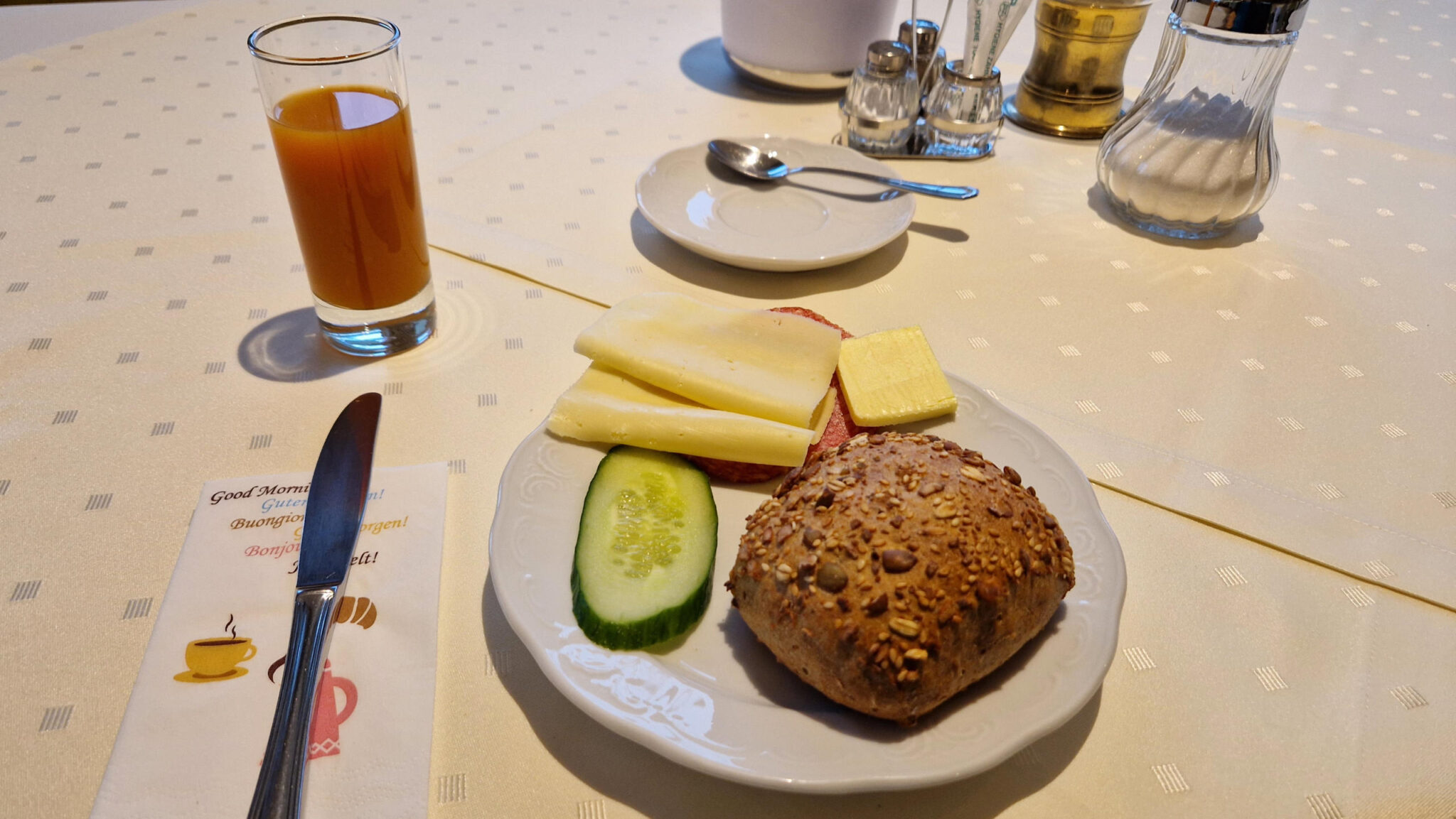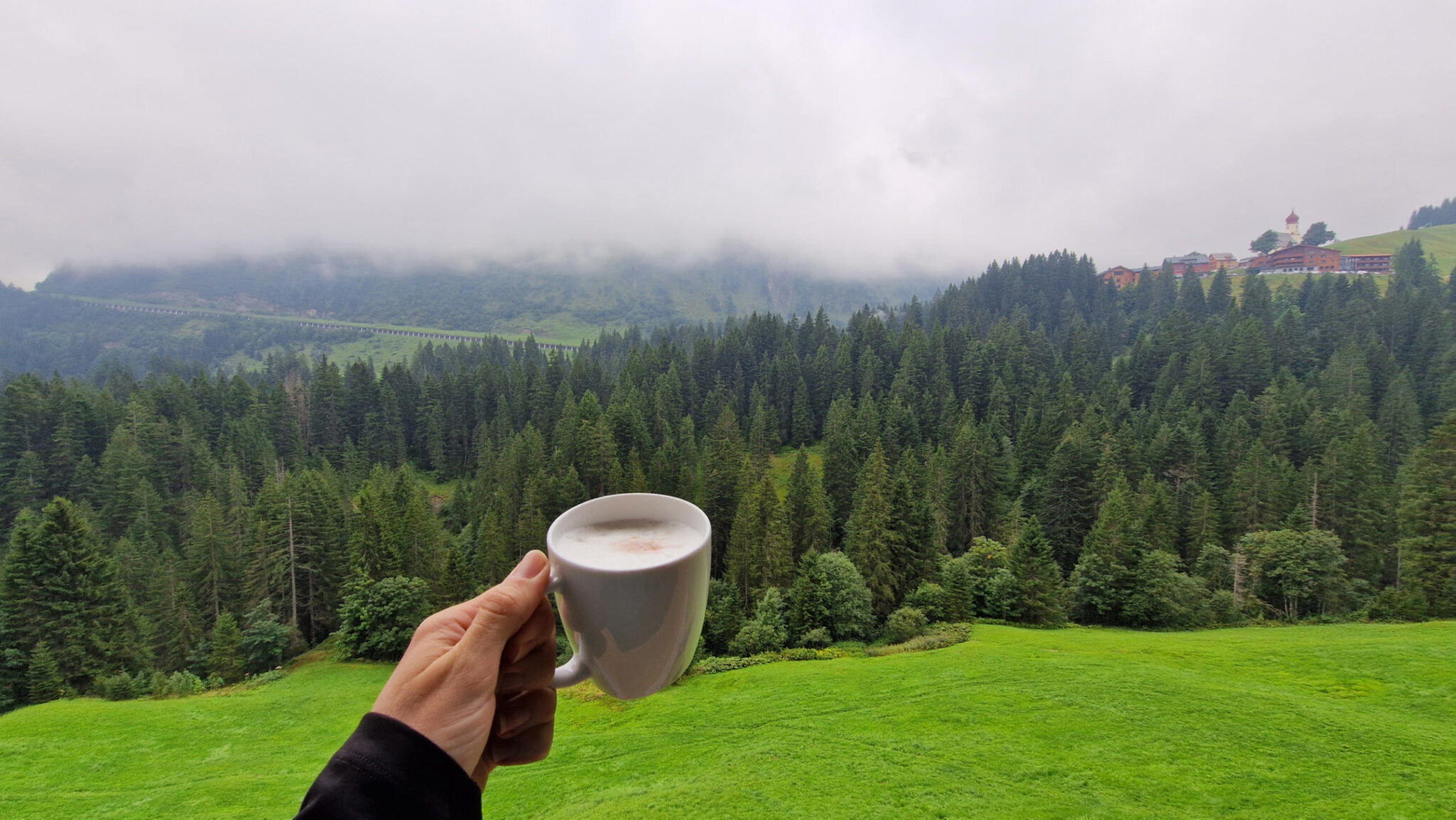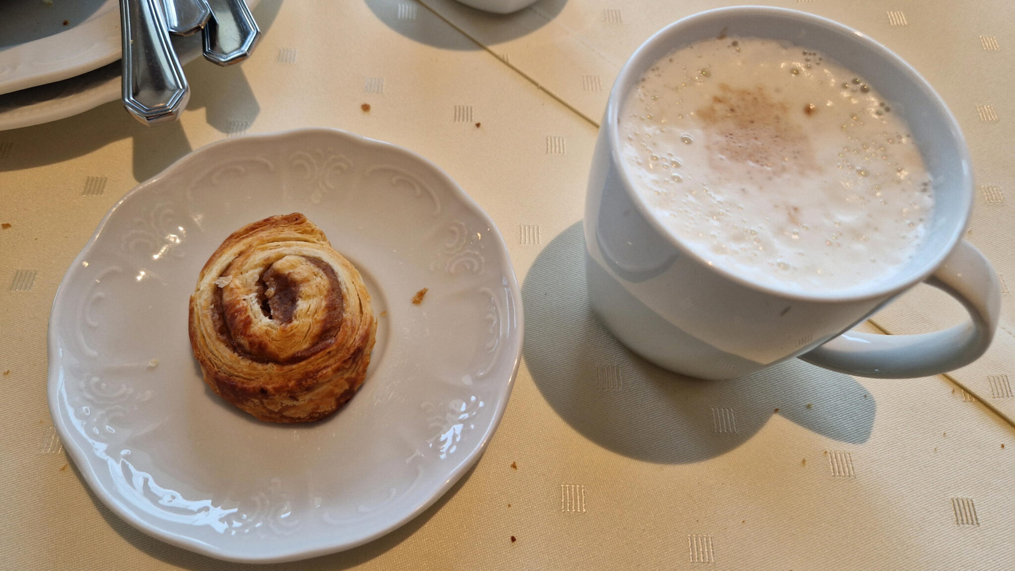 Heute sollte das Wetter besser werden. Sollte. Erst ausführlich gefrühstückt. Danach noch einen Schokomilch aufs Balkon und noch ein Cappuccino. Zum Glück war die Kaffeemaschine besser als das Wetter.
