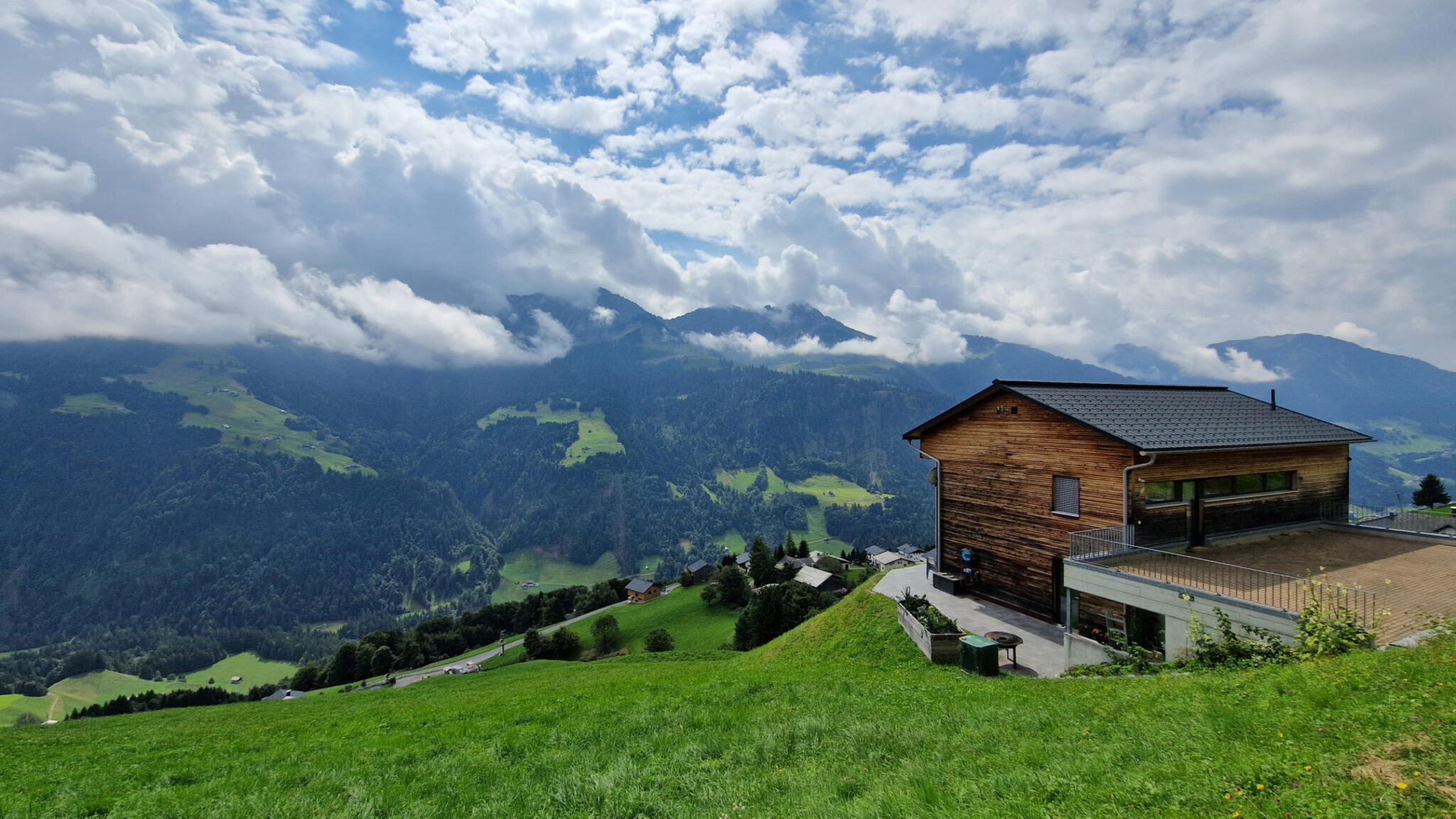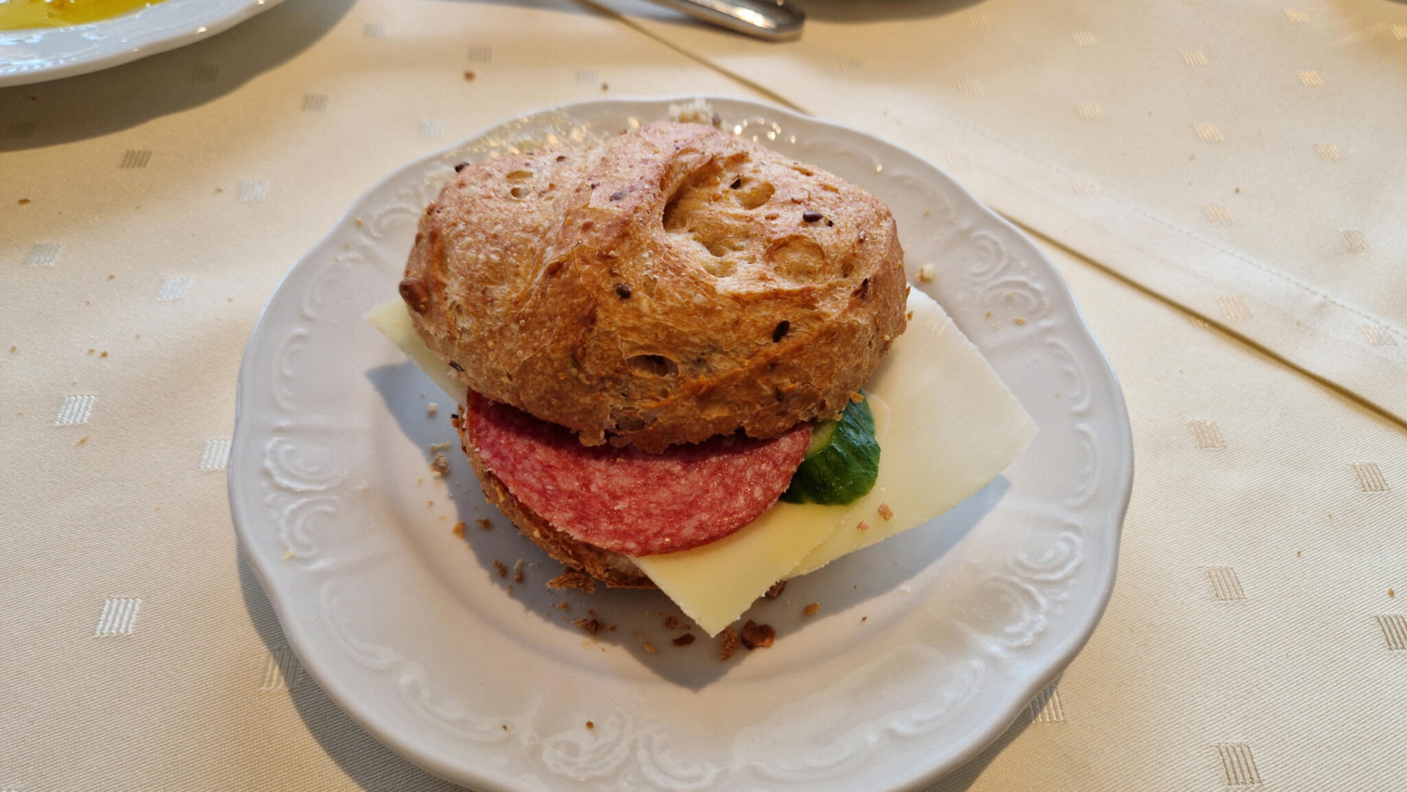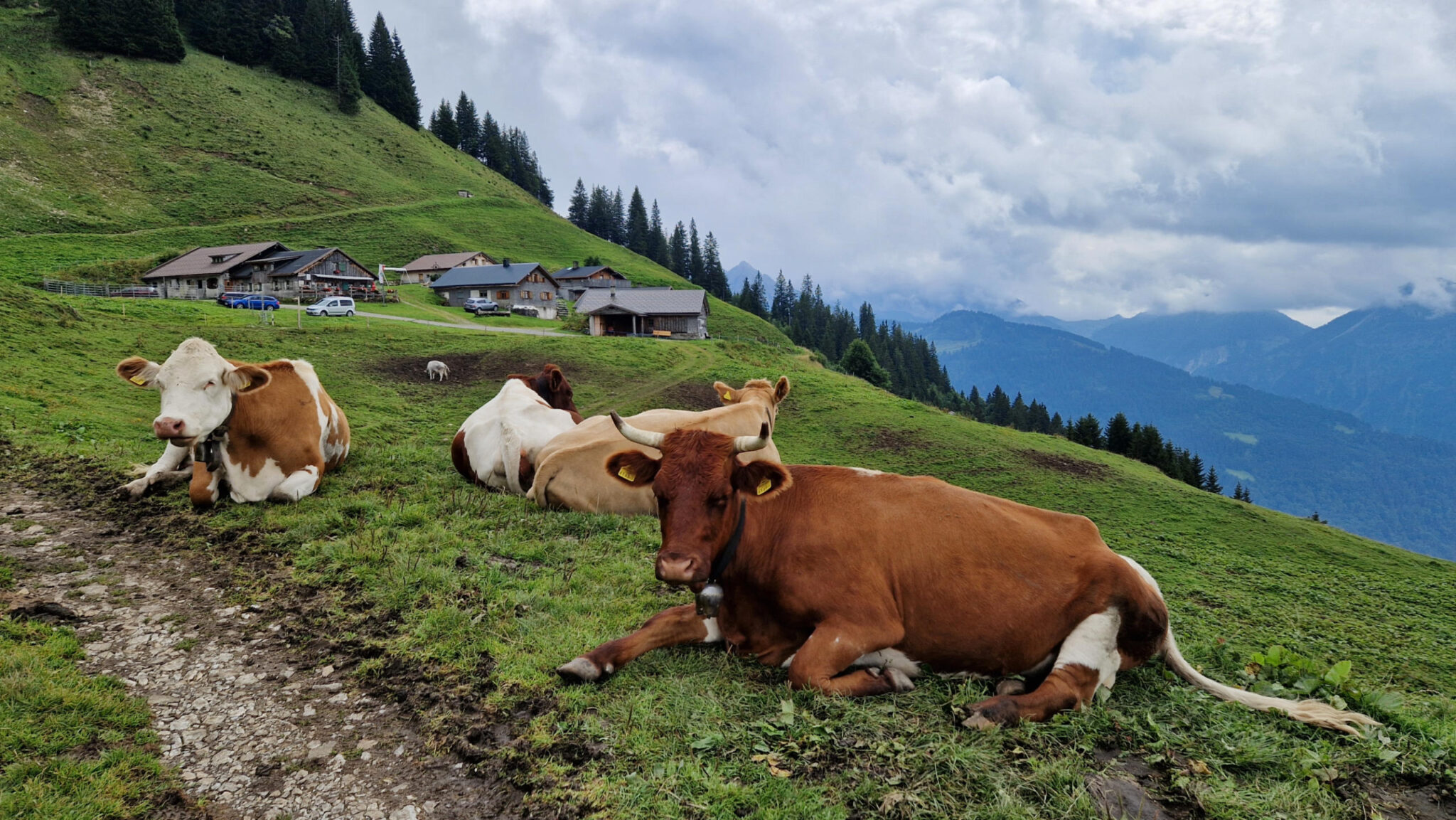 Bei der Türtschalpe ein Butterbrot (3€) mit Schnittauch (2,50€) und frische Milch. Vor 2 Wochen hatte ich diesen Alm in der Weite mitten im Nichts gesehen und diese Wanderung so überlegt.