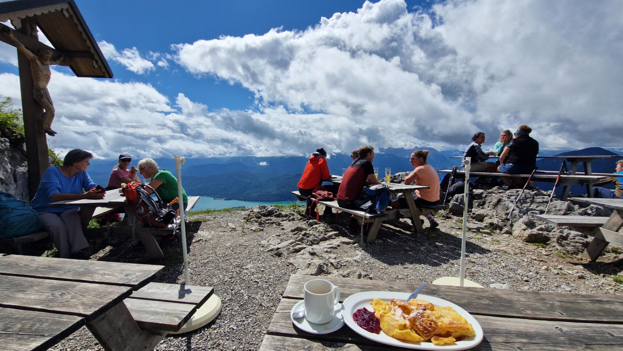 Auch der Weg runter ging deutlich schneller als angegeben. Die Parkkarte hatte ein 2€ Gutschein für die Geschäfte im Dorf. 2 Brezel geholt bei Bäckerei Luidl in Ohlstadt und dann noch den ganzen Nachmittag für eine ruhige Heimreise.