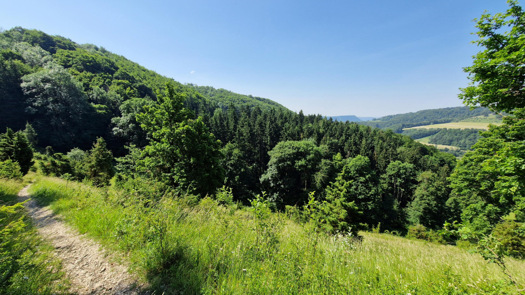 Nochmal wandern. Bei bestem Wetter. Unter schwäbisch Gmünd fängt der Alb an, da ist es hügeliger. Den Kaltes Feld Weg gefunden. Ist auch ein Wanderbares Deutschland Qualitätsweg. Beim Parkplatz Furtlepass fängt es an.
