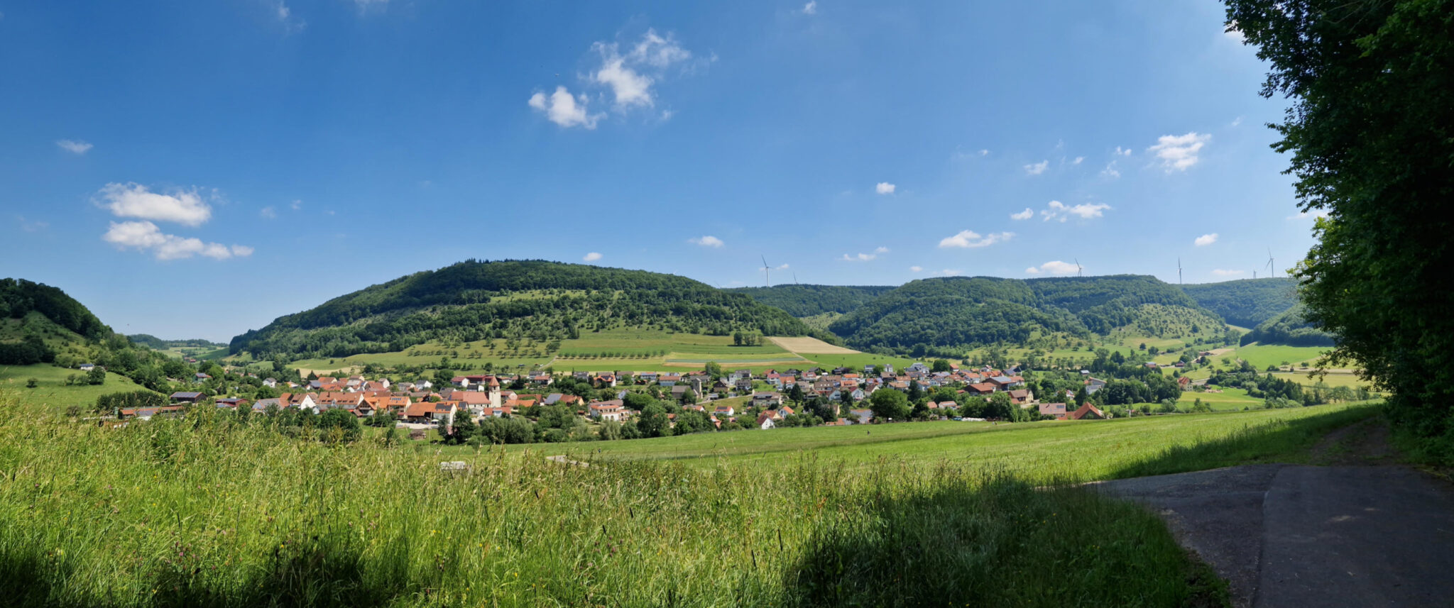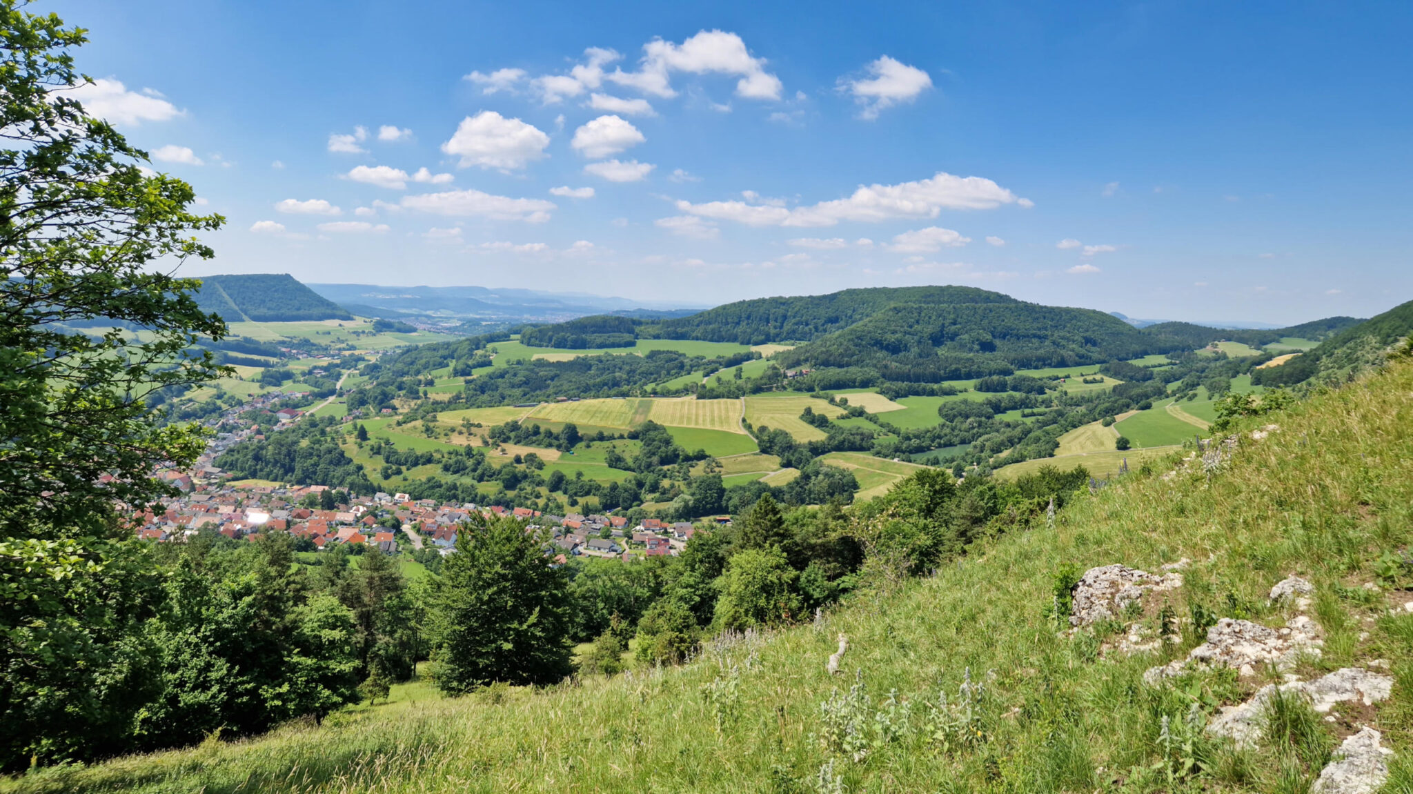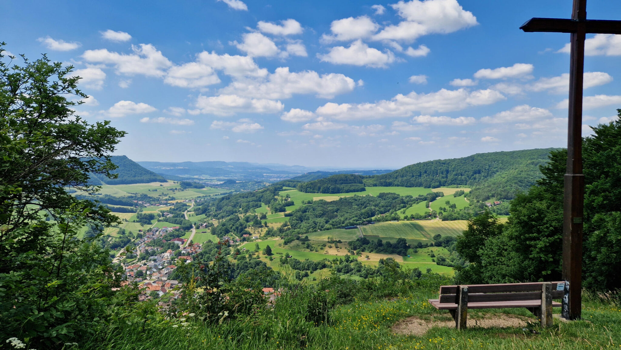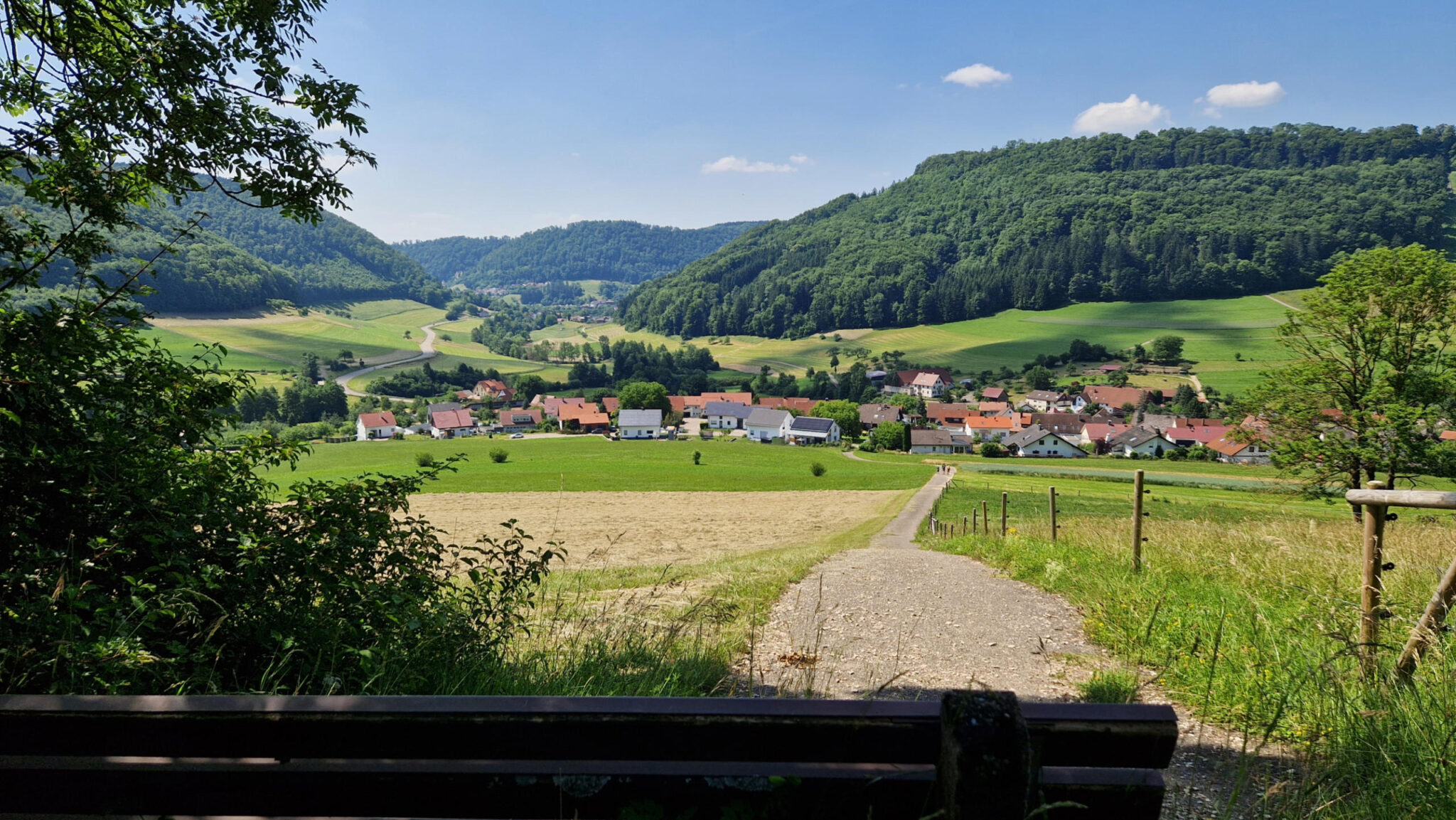 Die schmale pfade und Weitblicke ins Tal geben ein guten Alpengefühl. Auch eine Skisprungschanze in Degenfeld.
