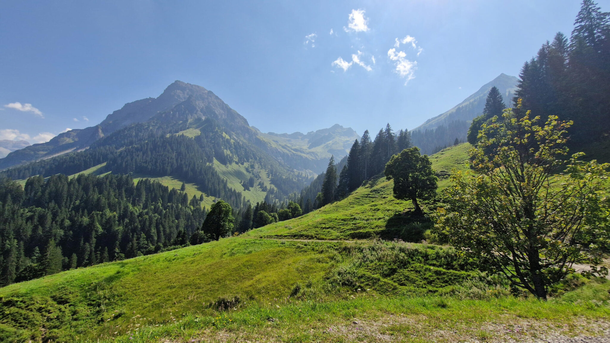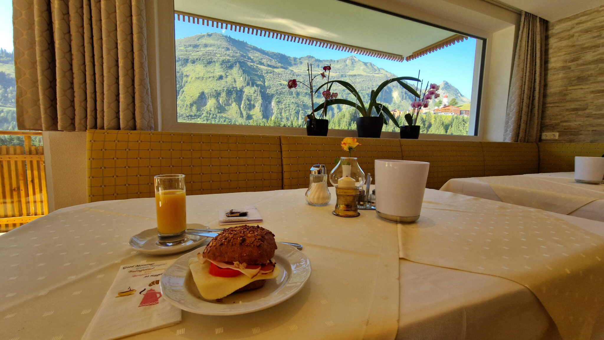 Ausführlich gefrühstückt mit Aussicht und vom Hotel Sonnalpen losgefahren richtung Hause. Aber bei dem Wetter natürlich nicht direkt nach Hause. Erst noch eine schöne steile Wanderung zu Toblermann geplant.