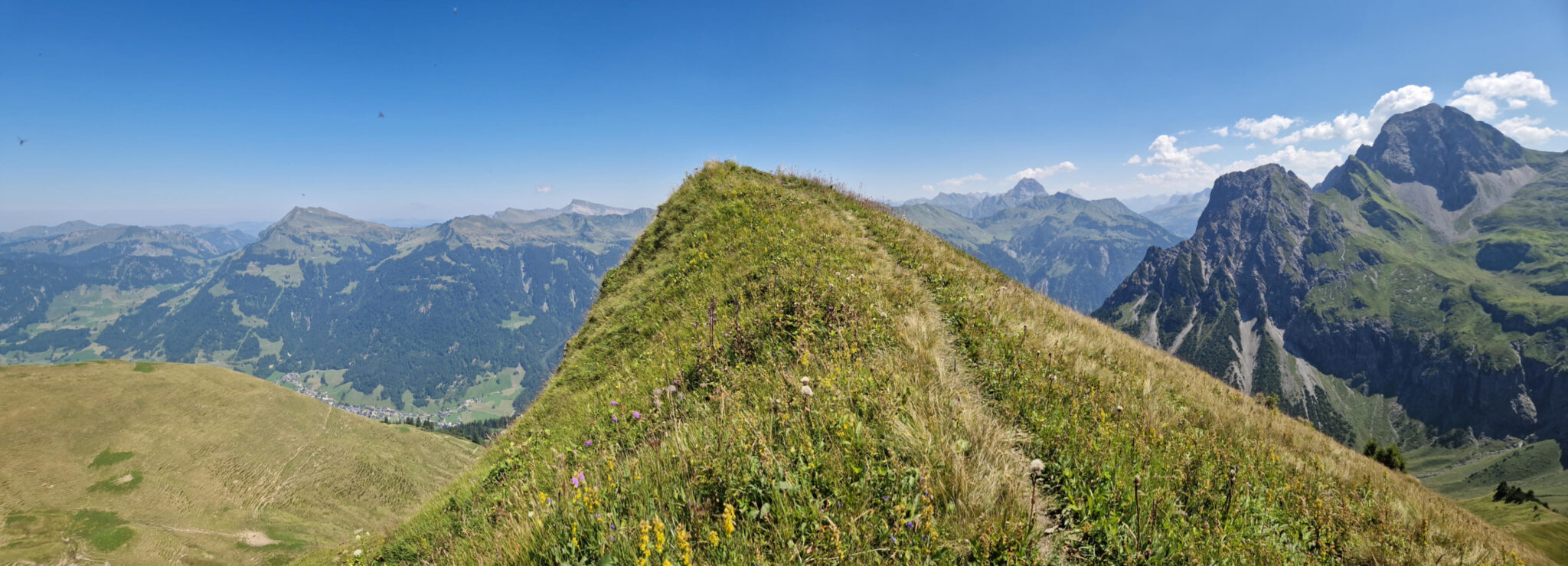 Leider kein Kreuz auf Gipfel. Das macht die Aussicht aber nicht weniger schön. Problem aufm Gipfel ist dass sich da immer so viele fliegen sammeln bei gutem Wetter dass Mann da nicht stehen kann. Grund dafür ist die Thermik (Bei schönem, sonnigem Wetter erwärmt sich die Luft, steigt auf und erzeugt sogenannte Thermik. Insekten, nutzen diese aufsteigenden Luftströme, um mit wenig Anstrengung in größere Höhen zu gelangen) und das Paarungsverhalten (Gipfelbalz)