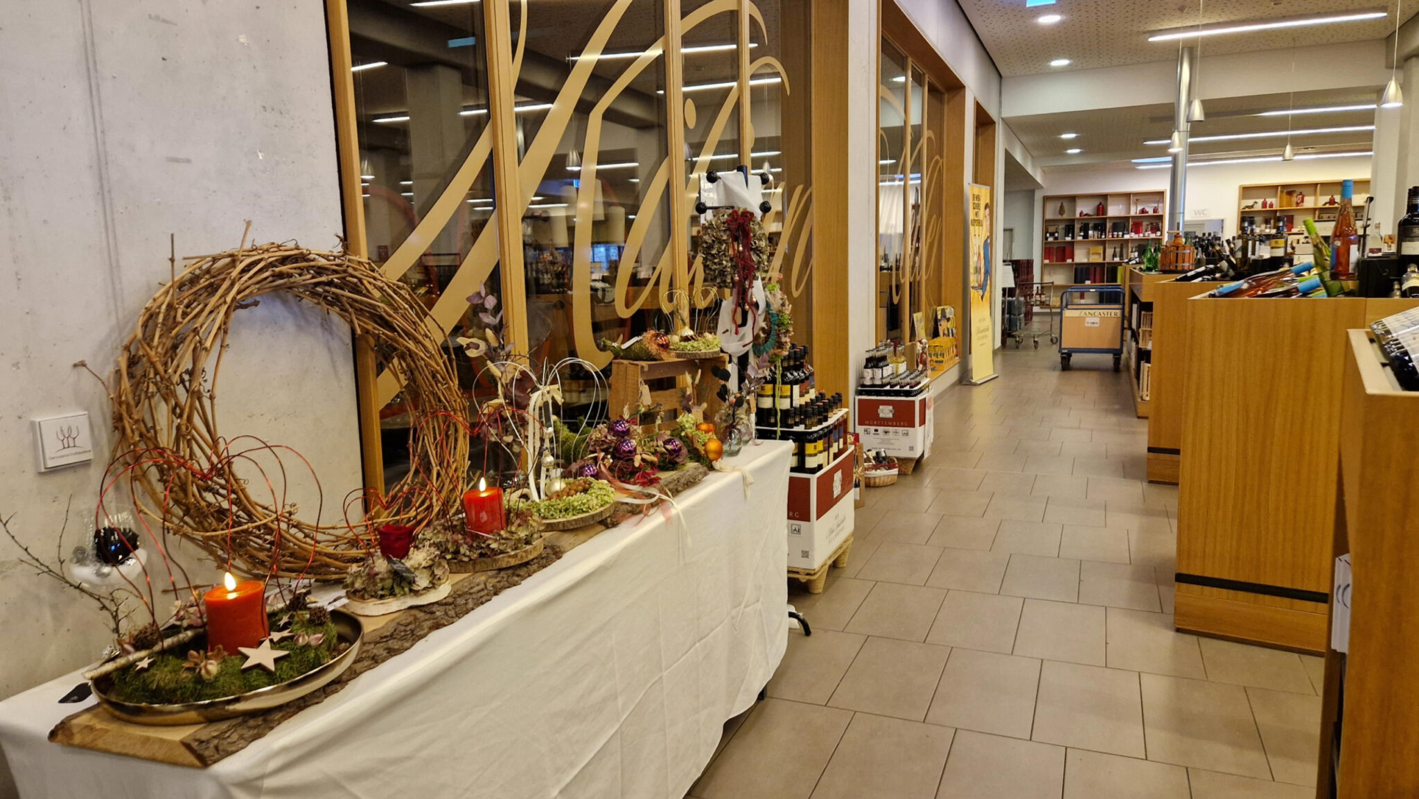 Erst zur Genossenschaftskellerei Heilbronn. Da war ein Weihnachtsmarkt, sagten sie. 3-4 Handwerker die zwischen den Wein ausstellen ist aber zu klein um es Weihnachtsmarkt zu nennen.