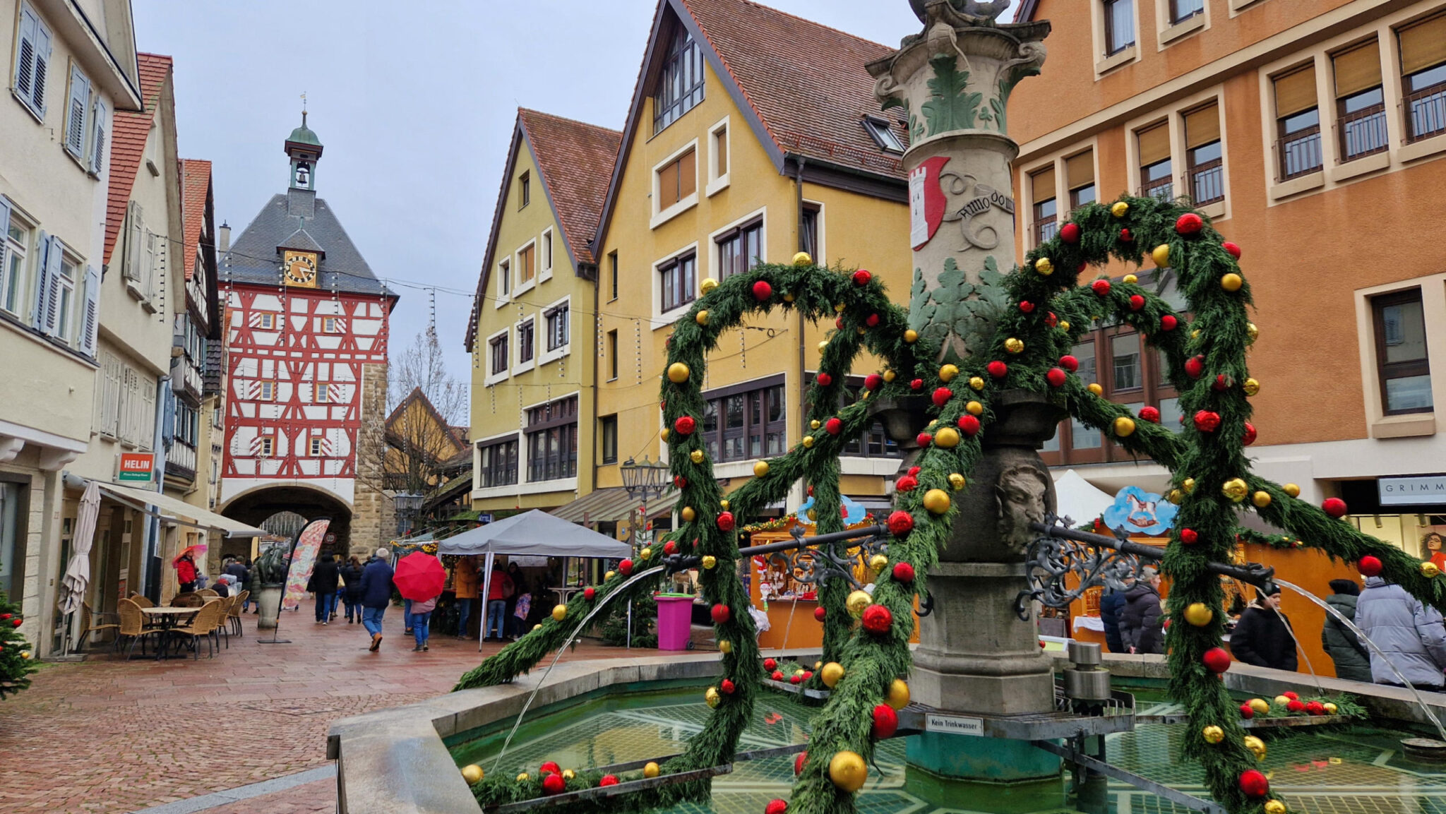 Schöne Fachwerkstadt, aber als Weihnachtsmarkt nichts besonderes. Genauso wie Besigheim letztes Jahr. Viele Grieche in der Stadt, eine gute Pita gefunden.