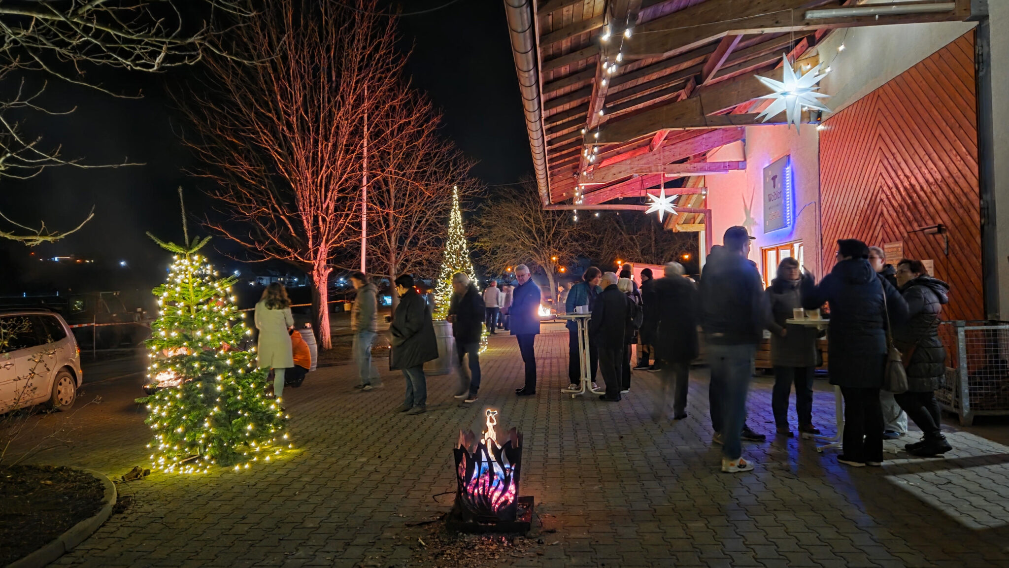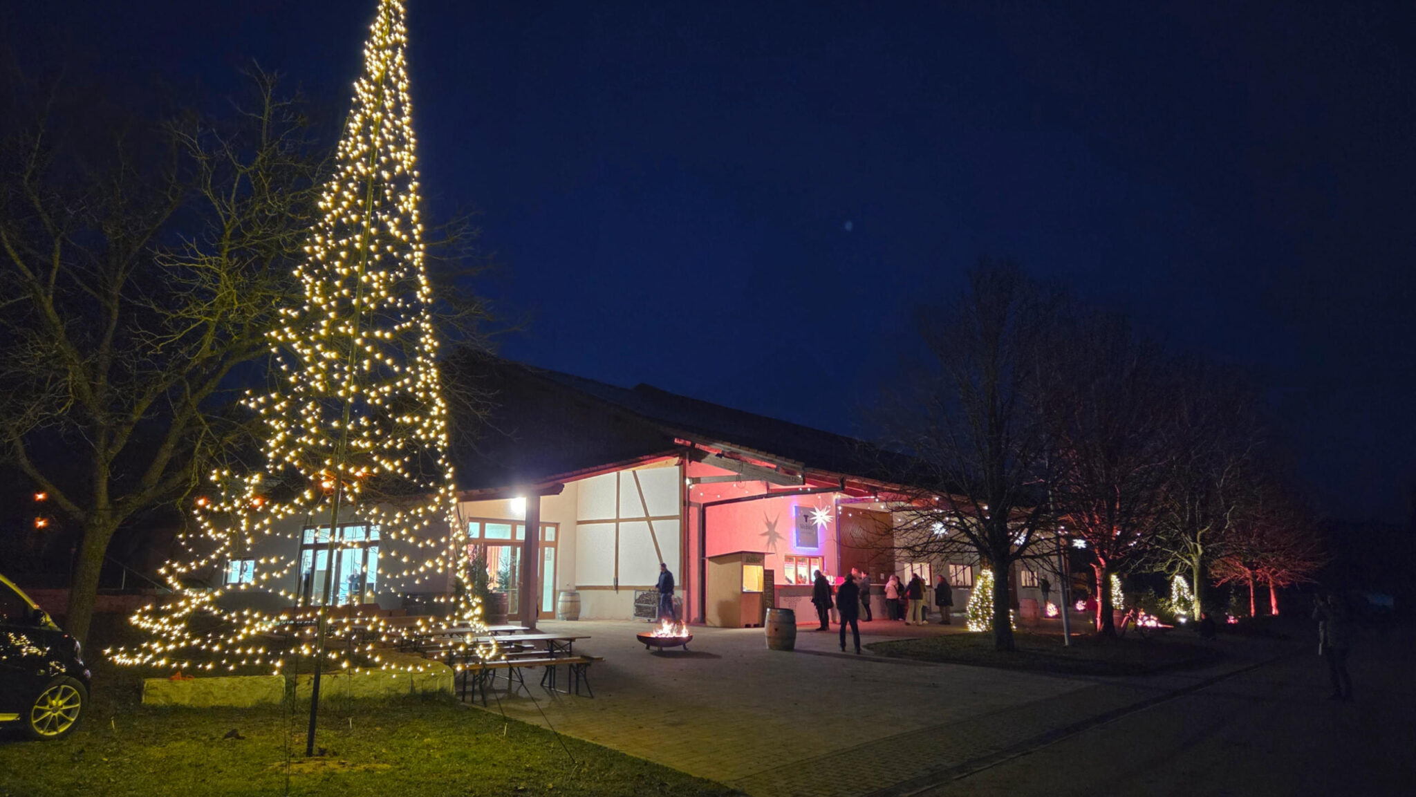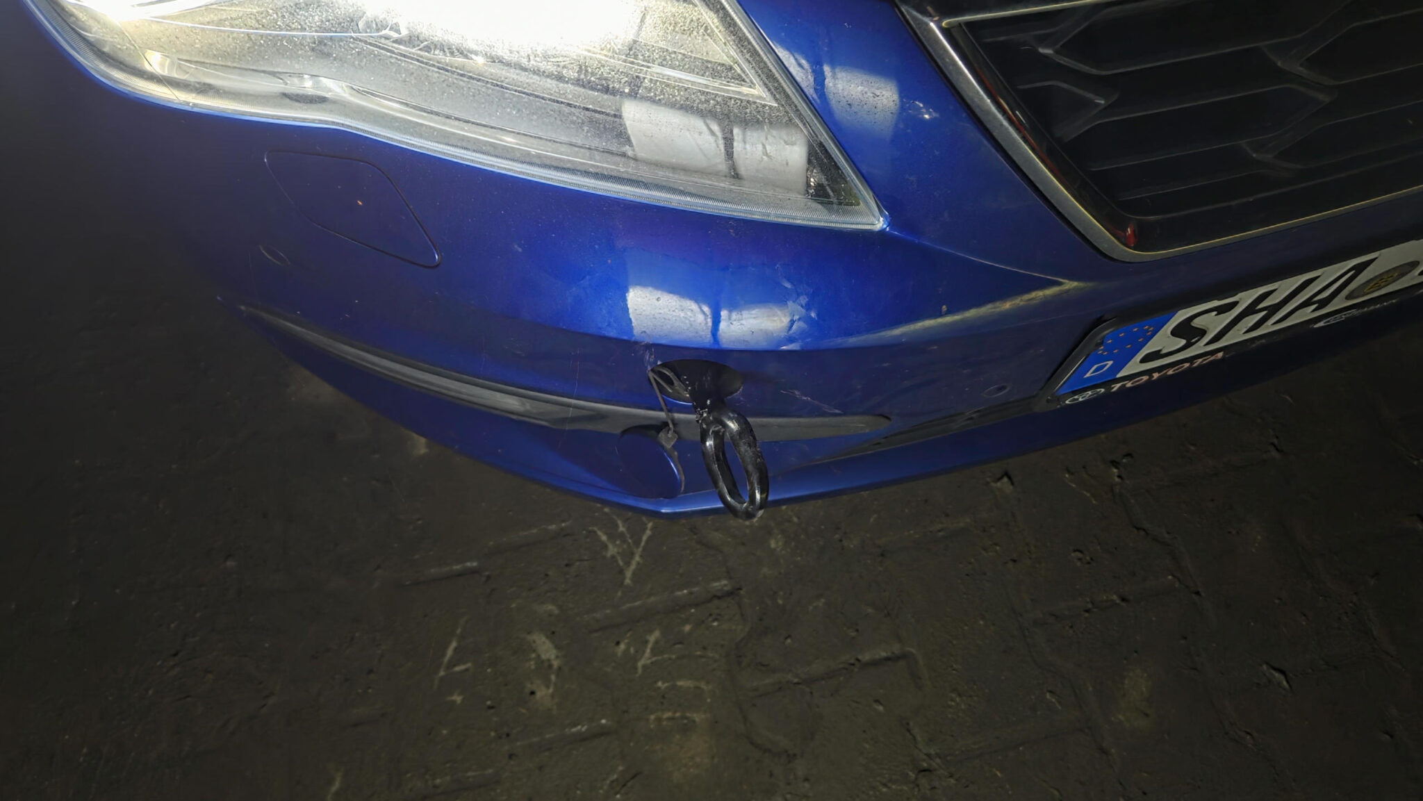 Guter Glühwein bei bester Atmosphäre. Fleisch geholt. Jetzt nach Hause. Oder doch noch nicht. Der Parkplatz war wegen Bauarbeiten uneben und wegen des Regens war der Boden auch noch weich. Die Kombination hat dafür gesorgt dass das Auto nicht weg wollte. Was machen wir jetzt? Hilfe gefragt beim Organisator. „Zum Gluck“ waren wir schon mindestens der 2te Festgefahrene und der Traktor war schon unterwegs. Wie zieht der Traktor mir aber raus? Offroad Fahrzeuge haben so einen Abschlepphaken vorne aber ich nicht. Rausgefunden dass ich auch so ein Ding hintern beim Ersatzreifen habe und dass ich vorne eine klappe aufklicken muss und den Haken da befestigen.